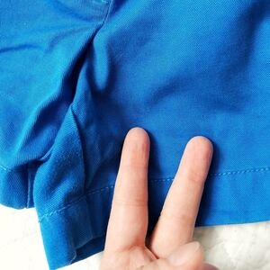 Bright blue summer shorts from J.Crew. Worn twice before outgrown, but there are a few faint spots I have not yet tried to remove as shown in photos. Priced accordingly. Otherwise these look great! 3 or 3.5" inseam. Smoke and pet free. #jcrew #mama #blue #summer #summerdays #chino #spring #vacay #shorts #shortshorts #beach #luxe
