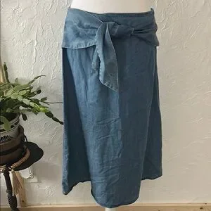 Stylish denim blue skirt perfect for casual outings. Features a chic tie-front design for added flair.