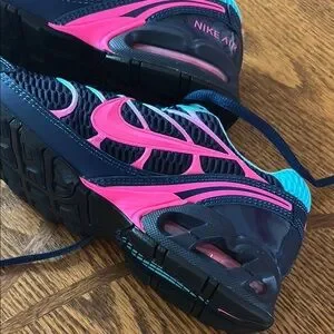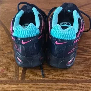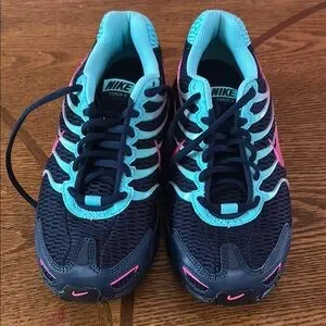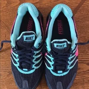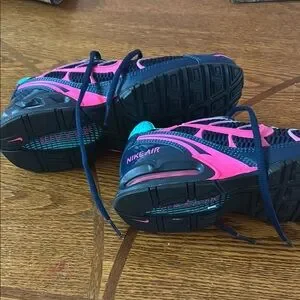 Step into comfort and style with Nike's athletic shoes, featuring a breathable mesh upper and a cushioned sole for optimal performance. The striking blue and pink color combination adds a vibrant touch to your workout gear, while the padded collar ensures a snug fit during your most intense activities. Used one time in very good condition