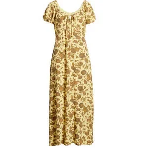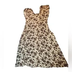 Reposhing dress is too big on me and not for a 65-year-old ! Elegant maxi dress with floral design. Features short sleeves and a scoop neckline. Ideal for casual wear.