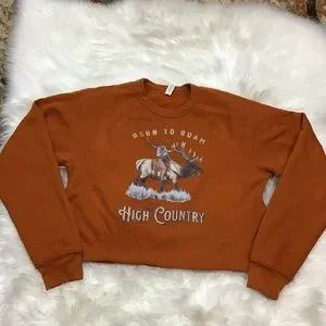 “Born to Roam" High Country Lifestyle Cowgirl Cute Cropped Sweatshirt Elk L