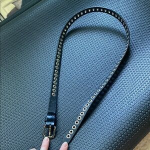 Elevate your style with this chic black studded belt. Perfect for adding an edgy touch to any outfit.