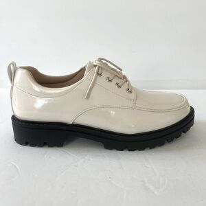 Elegant bone color lace-up shoes with a sleek design. Perfect for any occasion. Durable black sole for added comfort.