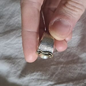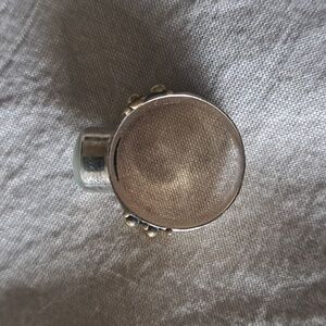 Unique silver mixed metal ring featuring a blue evil eye, has a texture to the band and its very thin making it super comfortable for wear! Size 5