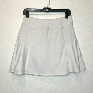 RLX by Ralph Lauren white golf/ tennis / sports skort. the front has a slip pocket, the back has 2 zipper pockets, under the skirt is the built in shorts which has a pocket on each side. the size tag is missing but i would say this is a medium, please compare measurements below to your preferred fit.