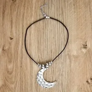 Boho Silver Moon Hammered Necklace Hippy Bohemian