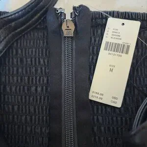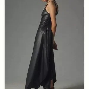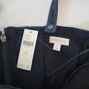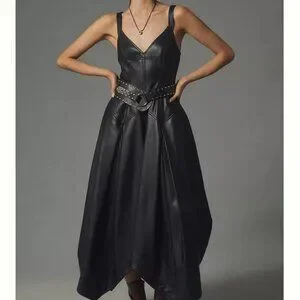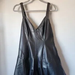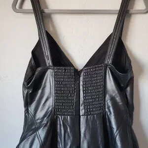 "NEW" Fantastic Looking Black Faux Leather Corset Dress By Pilcro ( Anthropologie). Back Zip with Covered Elastic for Snug Fit, Adjustable / Button Straps, V neck with Fitted Bodice, Fully Lined with Tulle/Mesh Panels at Hips for Fullness,
