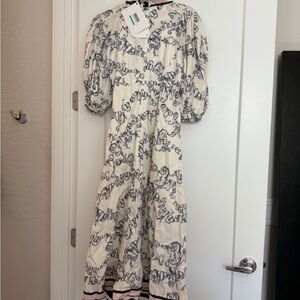 NWT Zimmermann. Chic cream dress with blue floral pattern. 3/4 sleeves and elegant design. Midi to maxi length. Size 1.