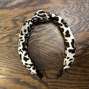 Stylish leopard print headband perfect for adding a chic touch to any outfit. Features a classic black and cream pattern.