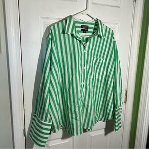 J.Crew Garçon cotton poplin shirt in Kelly Green striped print. Size 24 NWT Plus