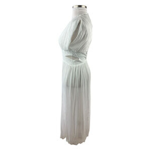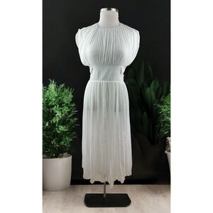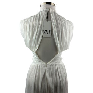 NWT ZARA Pleated Chiffon Maxi Dress Side Cutout Detail in White Women's Size XS