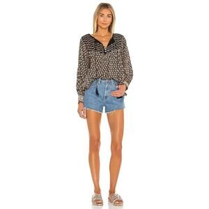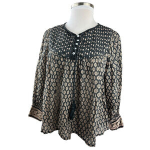 Cleobella Winter Blouse Black Brown Top Pintuck Small Peasant Boho Anthropologie