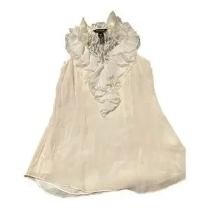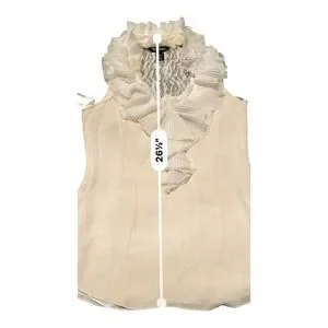 Elegant cream blouse with ruffle details. Sleeveless design. Perfect for formal occasions. Gorgeous!