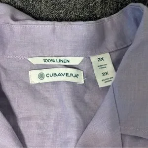 Men’s Cubavera Purple 100% Linen Casual Button Down Shirt 2X