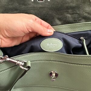 Mulberry Alexa light green bag in preloved & excellent condition. Silver hardware, suede & linen interior, shoulder strap removable.