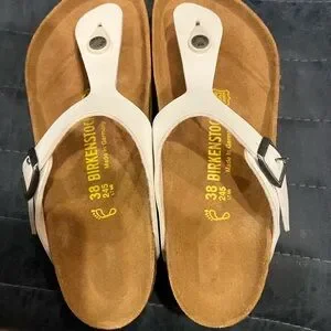 Birkenstock White and Tan Sandals
