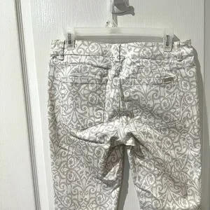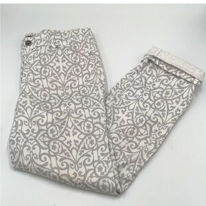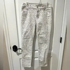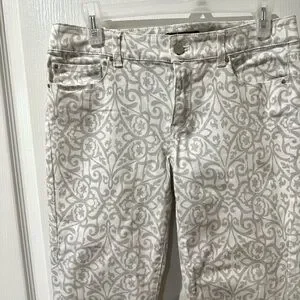 White House Black Market Gray and White Paisley Print Slim Ankle Jean Sz 6 NWOT