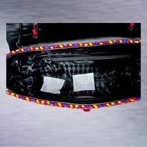Colorful shoulder bag flaunts style and functionality. Features the house's label with a spacious interior, this bag is the perfect bag to keep your essentials close at hand.