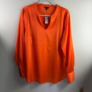 NWT Talbots Women’s Large Satin Blend Orange Pull-on Blouse Top Business