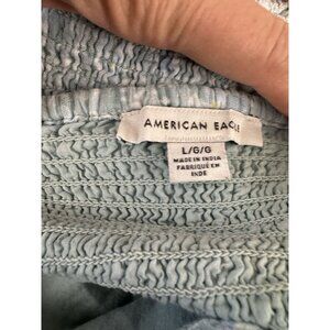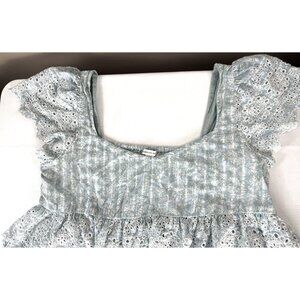 American Eagle L Babydoll Eyelet Lace Light Blue Dainty Floral Top Cottagecore