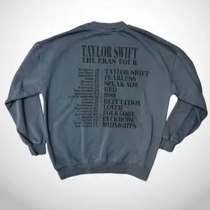 100% Authentic Taylor Swift blue crewneck sweatshirt from The Eras Tour (North American Tour Dates 2023).