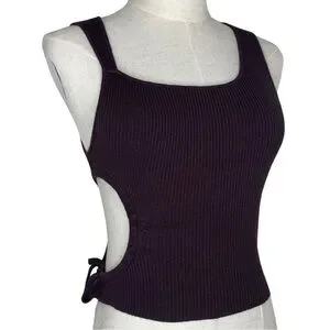 Urban Outfitters Brown Asymmetrical Ribbed Knit Side Cut Out Tank Top
