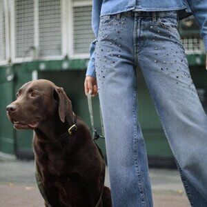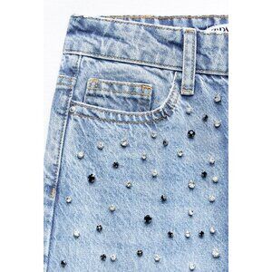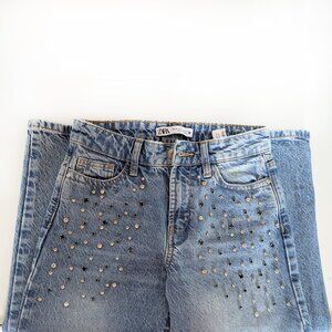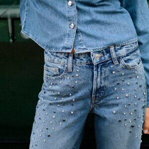 Straight-Cut High-Waist Jeans With Rhinestones From ZARA