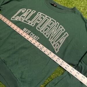 • Features: Forest green crewneck with bold "California West Coast" graphic lettering across the chest. Lightweight material with ribbed cuffs and hem for a casual and comfortable fit. Perfect for laid-back West Coast vibes.