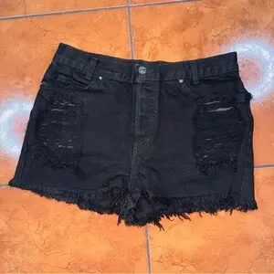 John Galt Brandy Melville Black Distressed Denim Shorts Size 30