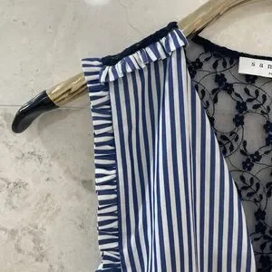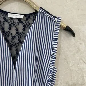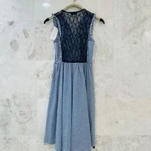 NWT SANDRO Dress Blue White Striped Cotton Lace Back "Gana"