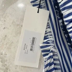 NWT SANDRO Paris Dress {S/1} Blue & White Striped Cotton Lace Back "Gana"