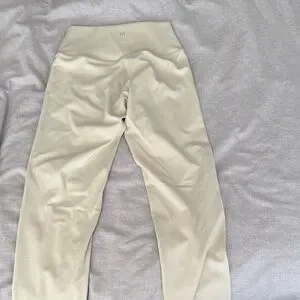 Stylish cream high-waisted leggings. Perfect for casual wear or workouts. 27 inch