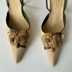 Vintage Chanel Beige Floral Embellished Sling Back Pointe Toe Heel Size 39