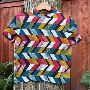 Maeve for Anthropologie Multicolor Geometric Knit Top + Skirt Sweater Set