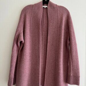 VINCE - Boiled Cashmere Open Rib Trim Cardigan, Heather Mauve, S