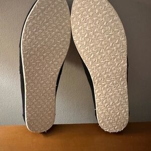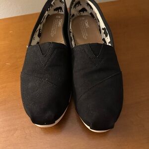 Experience effortless style with Toms Black Loafers & Slip-Ons. These shoes feature a sleek black design with a contrasting white sole, perfect for casual outings. Enjoy the comfort and simplicity that Toms is known for.