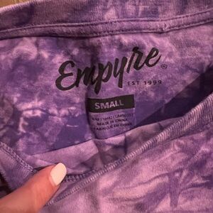 Colorful tie-dye tee with purple and green hues. Size small