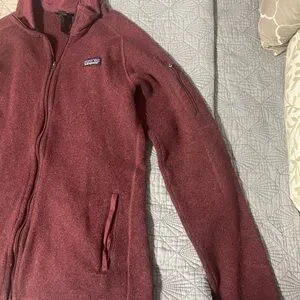 Experience warmth and comfort with the Patagonia Red Fleece Jacket, featuring a full-zip front and a cozy stand-up collar. This jacket's simple design and rich red color make it a versatile choice for any winter wardrobe.