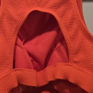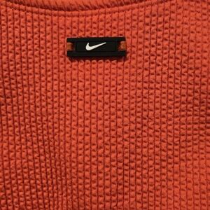 Scarlet Nike activewear top with a unique textured finish. Ideal for workouts.