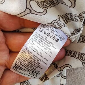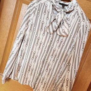 Banana Republic Chain Print Blouse Scarf Tie Women's Size XS Black & White EUC