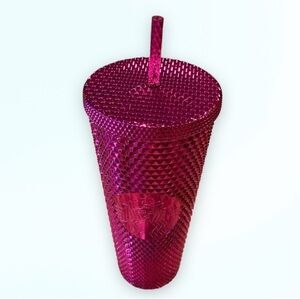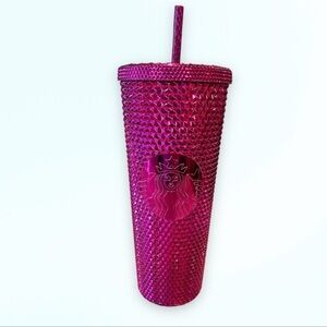 A high-shine bling 24 fl oz tumbler & 16 oz in sangria hot pink for your favorite cold beverage.