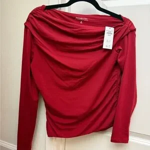 Abercrombie & Fitch— Red One-Shoulder Long Sleeve Top