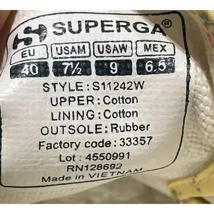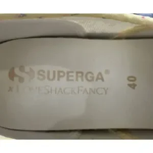 Superga x LoveShackFancy Low Top Floral Sneaker Size US women's 9 EU 40Cotton upper and lining materialRibbon lacesLace-up closure with metal eyelets and adjustable fitLoop signature tag at sideCushioned footbed provides sustained comfort for all-day wearNatural rubber, crepe-textured outsole offers traction and durabilityPlatform measures approximately 2" high