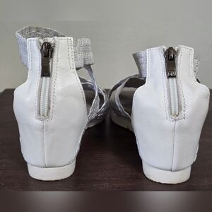 Bernie Mev. New York Honesty Sandals Women's Size 7.5 US/EUR 38. Back zipper closure, woven stretch nylon upper, crossbanded wish-bone-style straps, and full -wrap microfibre sock lining. Textile upper and rubber outsole. Measurements are shown in the pictures. Pre-owned; however, the sandals have been well-taken care of, as shown in the pictures. Smoke-free and pet-free home.