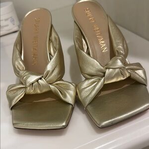Stuart Weitzman Playa Metallic Gold Mules size 8