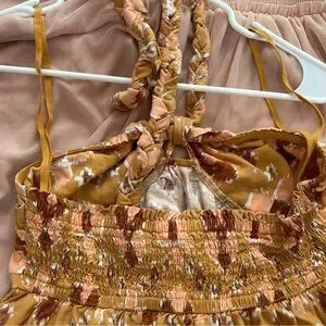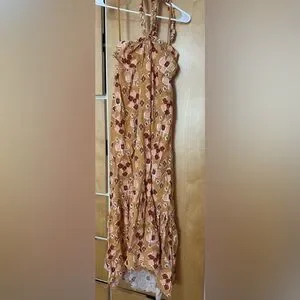 Step out in style with this Aerie maxi dress, featuring a chic bubble silhouette and tiered design. The tan and pink hues make it perfect for a cocktail night out, adding a touch of elegance and flair to your ensemble.