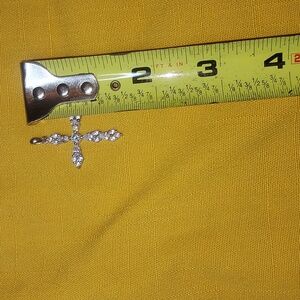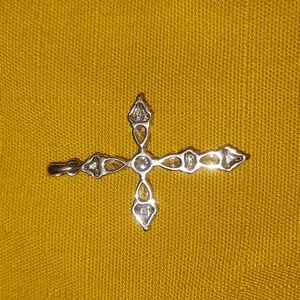 925 silver with faux stones ( I believe). Beautiful pendant. If it is braned, I can't make it out. 925 back, right side of cross.