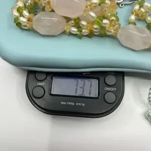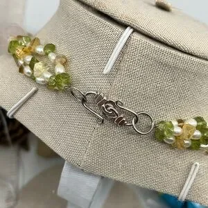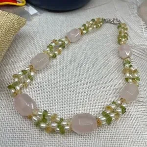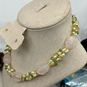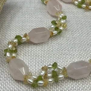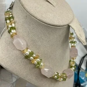 Materials: Rose quartz, peridot, citrine, freshwater pearls, silver-tone hardware