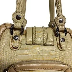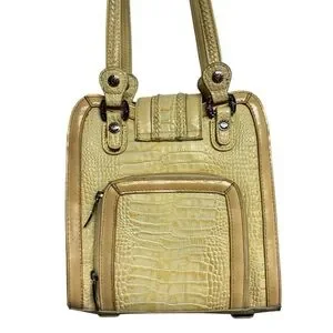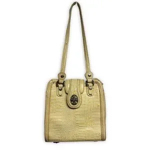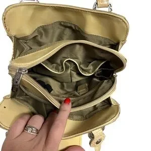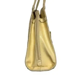 9"x9", handle drop about 13". good used condition, glue has yellowed around handles and zipper, see pictures