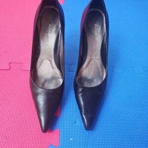 Heel 3.5". Pointed toe. Slip on. Leather. Made in Italy.